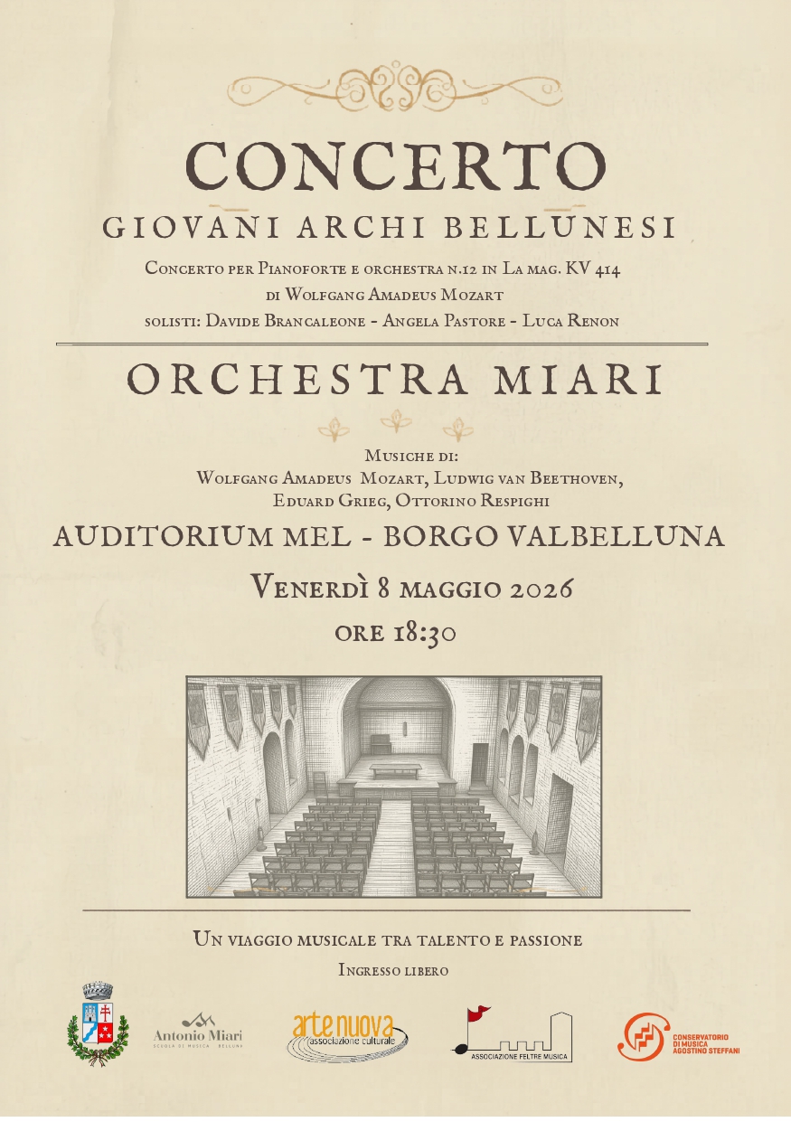 Venerdì 8 maggio alle ore 18.30 Auditorium di Mel