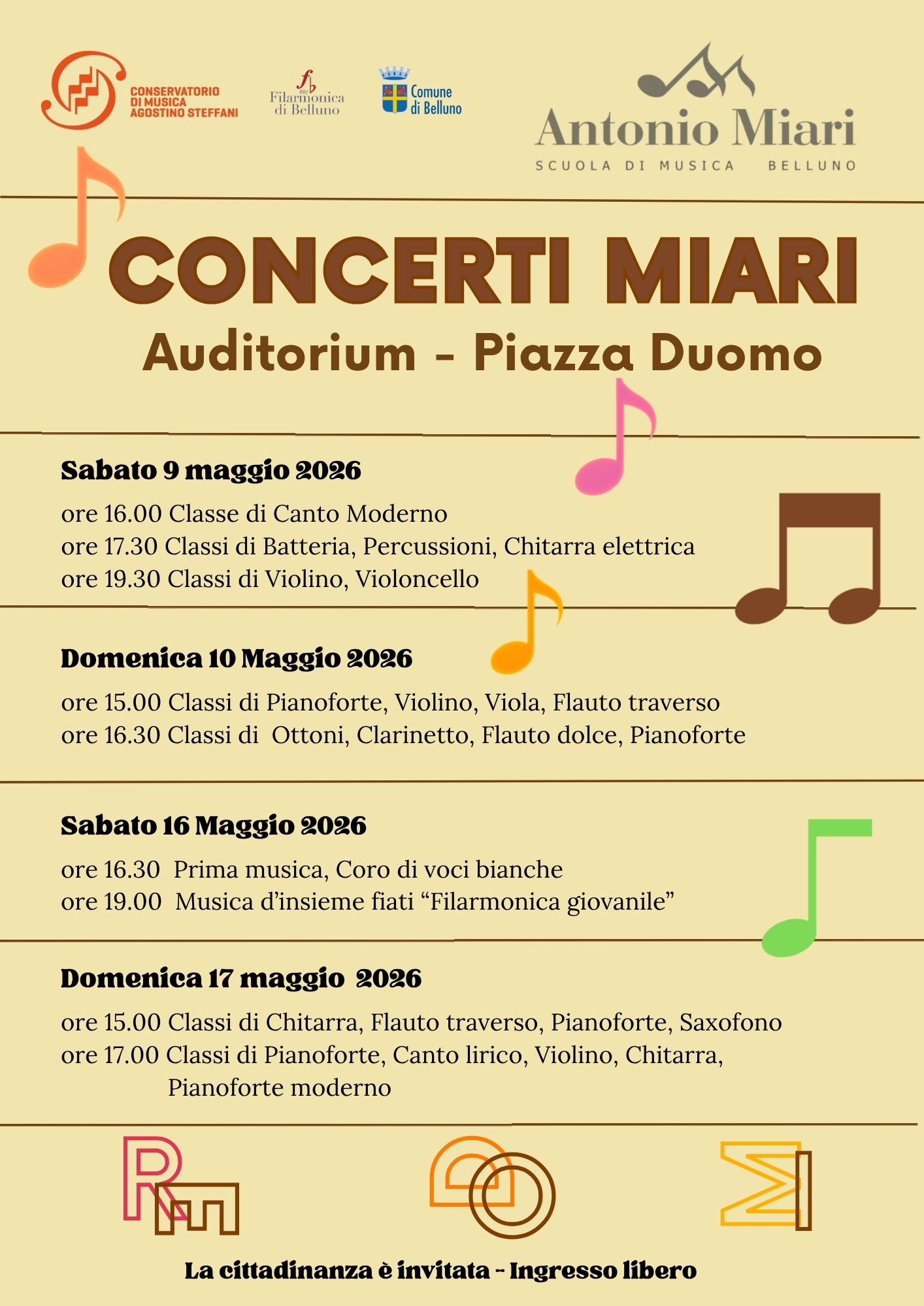Si rinnova l’annuale appuntamento con i concerti degli studenti della Scuola Comunale di Musica A. Miari nel rinnovato Auditorium in Piazza Duomo Belluno
