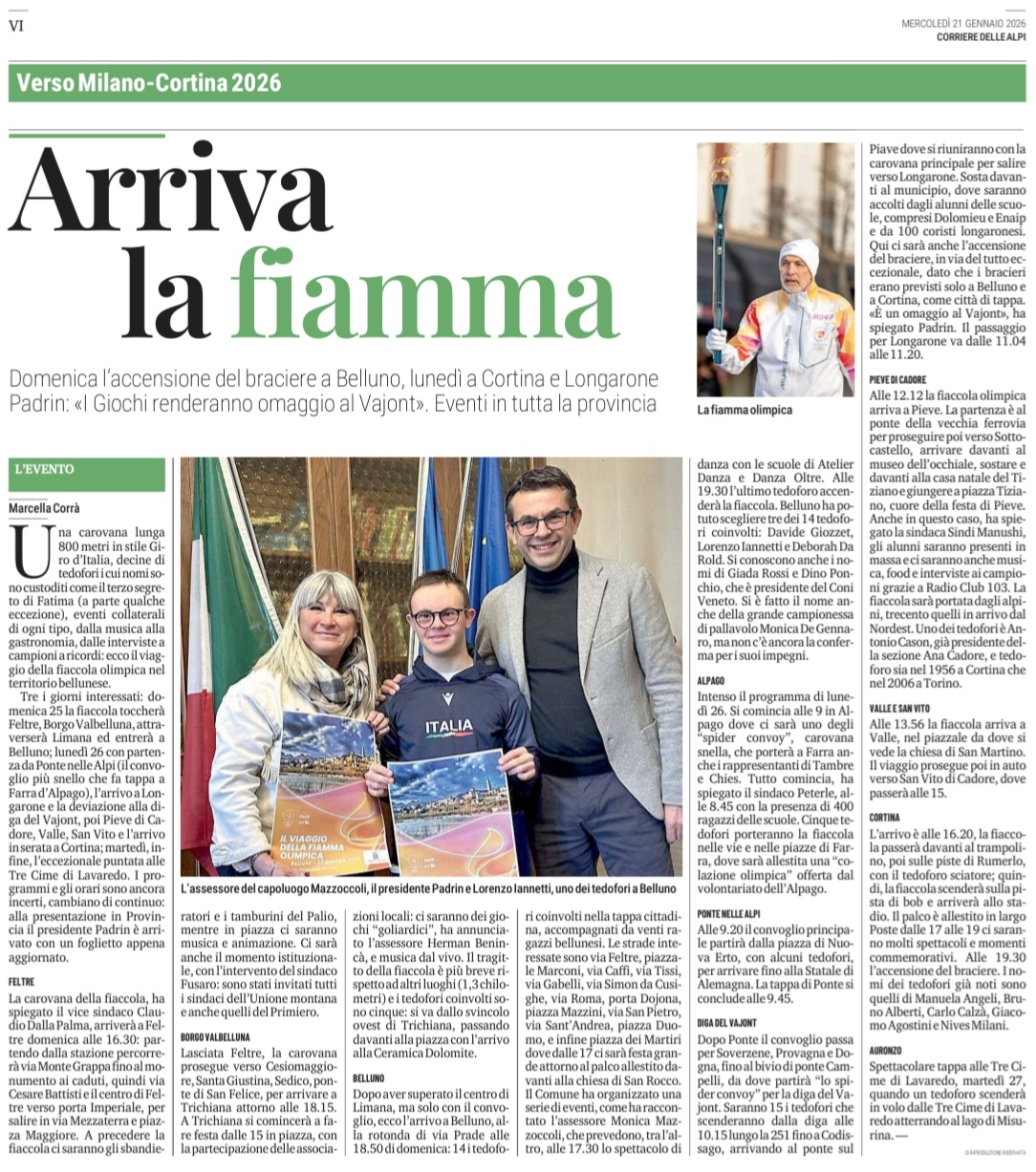 Lorenzo Iannetti nostro allievo tedoforo a Belluno